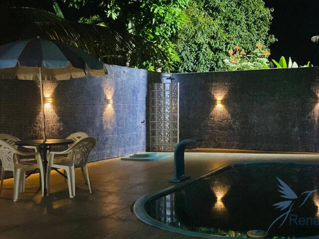 - ???? Piscina iluminada com cascata, perfeita para noites especiais